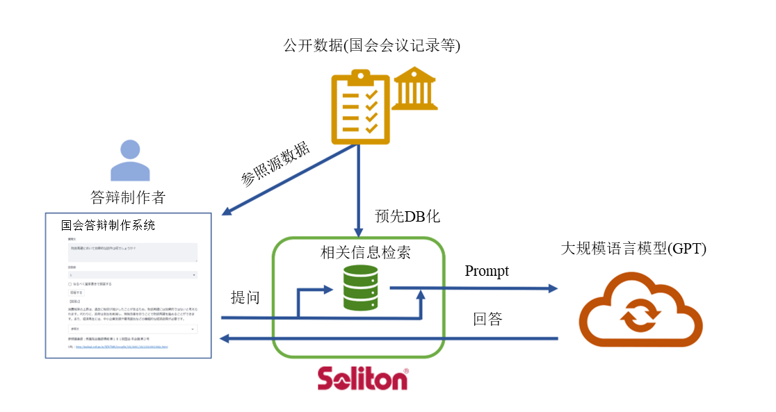 Soliton Systems K.K.(董事长: 镰田信夫)在2023年5月17日宣布,已开发了使用了自然语言处理AI的GPT的“国会答辩制作支援系统”,并可试用。通过让本系统学习作为公开信息的国会会议记录数据以及相关信息,利用自然语言进行检索,可以制作基于会议记录数据内容的答案和建议。