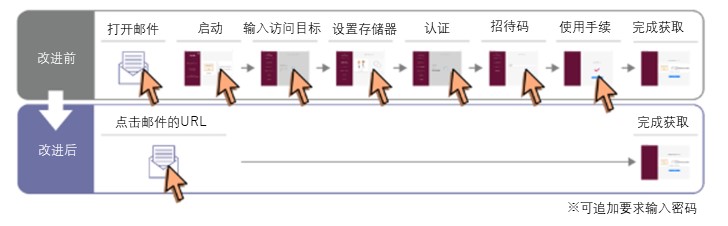 在此次的改良版中,只需点击来自证书颁发服务器(NetAttest EPS-ap)的通知邮件中包含的URL,Soliton KeyManager就会启动,自动取得获取电子证书所需的参数。几乎可以自动完成从电子证书的发行请求、获取到注册的操作。