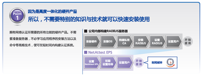 • <p><span style="color:rgb(0, 0, 0)"><span style="font-size:18px"><strong><span style="font-family:微软雅黑"><img alt="" src="/Uploads/images/20180115090516_1592.png" style="height:20px; width:11px" /><span style="font-family:宋体">选择<span style="font-family:times new roman,times,serif">NetAttest EPS</span>的理由 </span></span></strong></span></span><span style="font-family:宋体"><span style="color:rgb(0, 0, 205)"><span style="font-size:18px"><strong>简单!放心!</strong></span></span></span></p> <p><img alt="" src="/Uploads/images/20180115090158_9346.png" style="height:244px; width:655px" /></p> <p> </p> <p><img alt="" src="/Uploads/images/20180115090244_5812.png" style="height:315px; width:651px" /></p> <p> </p> <p><img alt="" src="/Uploads/images/20180115090408_9149.png" style="height:322px; width:651px" /></p> <p> </p> <p><strong><span style="font-size:18px"><span style="font-family:宋体"><span style="color:rgb(0, 0, 128)"><u><span style="font-family:times new roman,times,serif">NetAttest EPS</span>的功能 </u></span></span></span></strong></p> <p> </p> <table border="0" cellpadding="1" cellspacing="1" style="height:95px; width:644px"> <tbody> <tr> <td><span style="font-family:宋体"><span style="font-size:16px"><strong><img alt="" src="/Uploads/images/20180115091156_8146.png" style="height:20px; width:11px" />电子证书</strong></span></span></td> </tr> <tr> <td><span style="font-family:宋体"><span style="font-size:16px">与 <img alt="" src="/Uploads/images/20180115090753_6277.png" style="height:21px; width:148px" /> 联动,用户可以从智能设备直接申请电子证书,使用电子证书进行认证将更加简便,易行。</span></span></td> </tr> </tbody> </table> <p> </p> <p><img alt="" src="/Uploads/images/20180115091054_4910.png" style="height:237px; width:658px" /></p> <p> </p> <p><span style="font-size:16px"><span style="font-family:微软雅黑"><img alt="" src="/Uploads/images/20180115091235_1644.png" style="height:20px; width:11px" /><span style="font-family:times new roman,times,serif"><strong>RADIUS</strong></span></span></span></p> <p> </p> <p><img alt="" src="/Uploads/images/20180115091559_4886.png" style="height:343px; width:574px" /></p> <p> </p> <p><img alt="" src="/Uploads/images/20180115091449_4876.png" style="height:346px; width:570px" /></p> <p> </p> <p><span style="font-family:宋体"><strong><span style="font-size:16px"><img alt="" src="/Uploads/images/20180115092853_4904.png" style="height:20px; width:11px" /><span style="font-family:times new roman,times,serif">MAC</span>认证</span></strong></span></p> <p> </p> <p><img alt="" src="/Uploads/images/20180115091828_7623.png" style="height:340px; width:661px" /></p> <p> </p> <table border="0" cellpadding="1" cellspacing="1" style="height:126px; width:663px"> <tbody> <tr> <td><span style="font-family:宋体"><strong><span style="font-size:16px"><img alt="" src="/Uploads/images/20180115091955_3556.png" style="height:20px; width:11px" />扩展<span style="font-family:times new roman,times,serif">CA</span>功能</span></strong></span></td> </tr> <tr> <td><span style="font-family:宋体"><span style="font-size:16px">提供使用者通过<span style="font-family:times new roman,times,serif">Web</span>浏览器可以申请、获取、更新证书的功能。因此,使用者将成为主体,可以大幅减轻管理员的管理负担。另外,可以向管理员提供审批功能,因而实现了证书分发的安全性。</span></span></td> </tr> </tbody> </table> <p> </p> <p><img alt="" src="/Uploads/images/20180115092055_1127.png" style="height:177px; width:675px" /></p> <p> </p> <p><strong><span style="font-size:16px"><span style="font-family:微软雅黑"><img alt="" src="/Uploads/images/20180115092701_3907.png" style="height:20px; width:11px" /><span style="font-family:宋体">冗余</span></span></span></strong></p> <p> </p> <p><img alt="" src="/Uploads/images/20180115092754_8391.png" style="height:360px; width:488px" /></p> <p> </p> <p> </p> <p> </p>