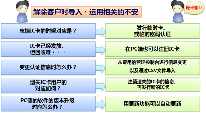 使用IC卡和密码做本人认证并强化安全。